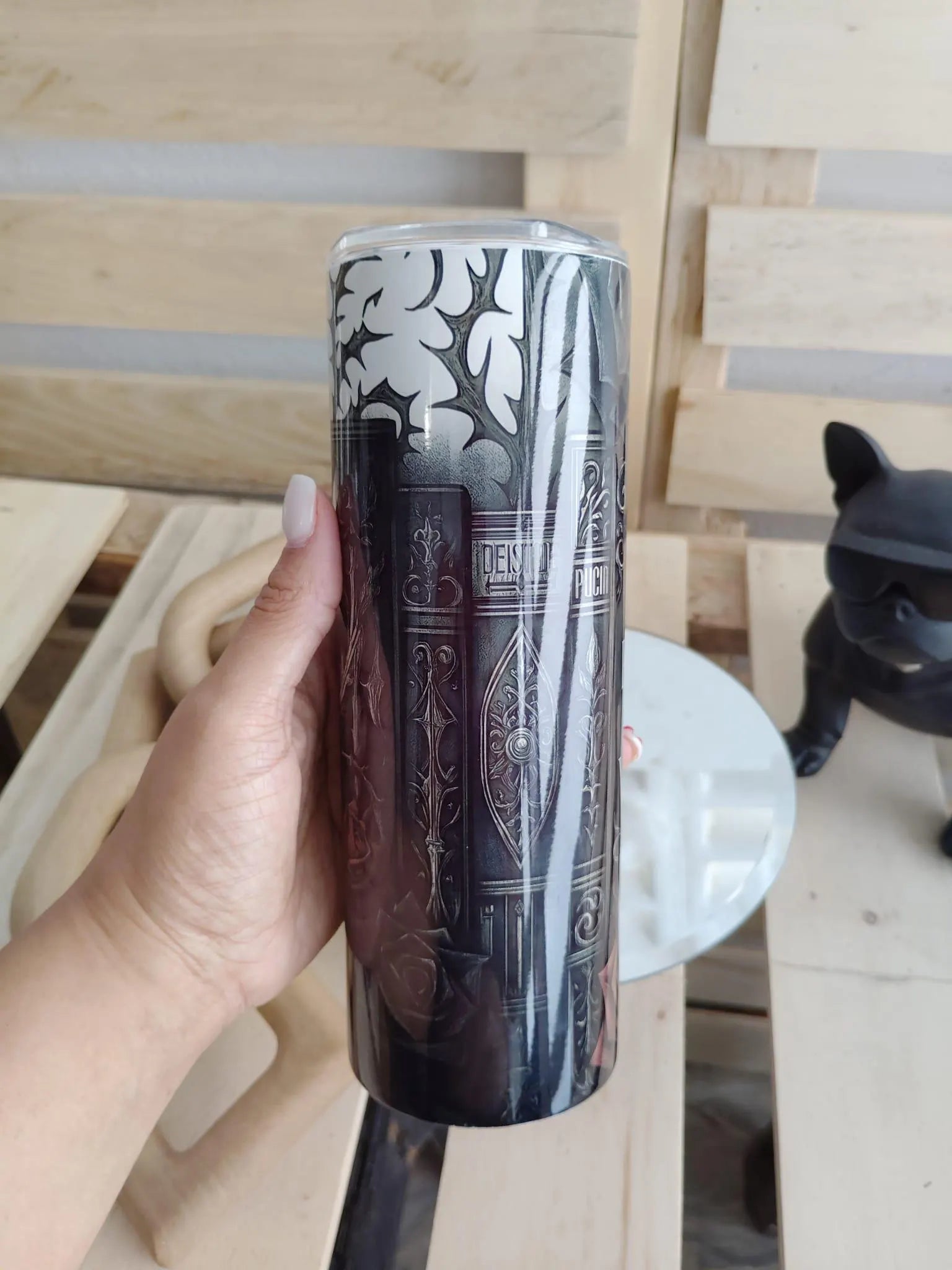 This dark and moody 20oz tumbler is for the villain lovers. Featuring gothic rose and bookshelf details, it's perfect for bookworms who root for the dark side.