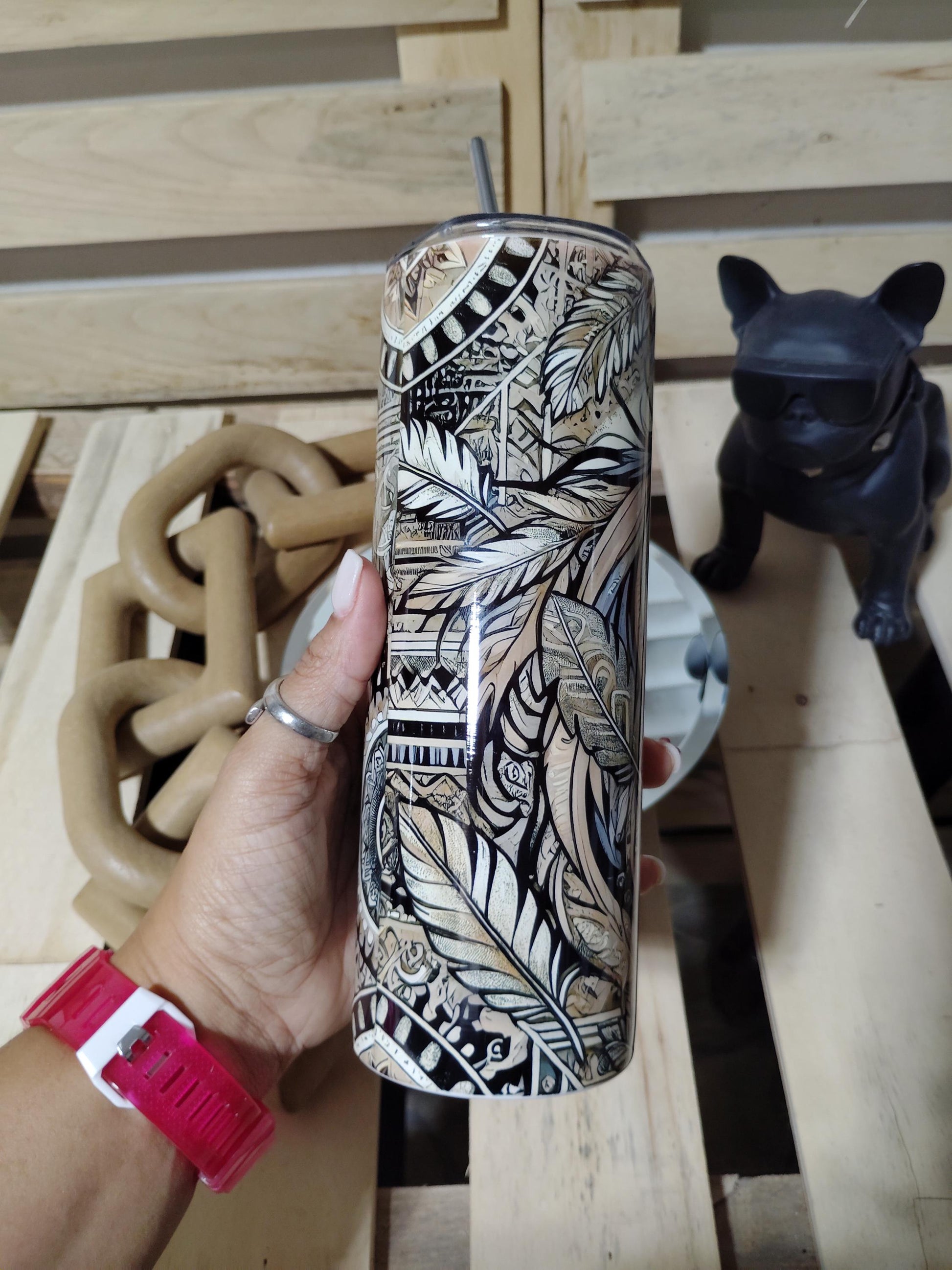 Embrace the spirit of the wild with this 20oz stainless steel tumbler featuring a stunning tribal horse design with feathers and earthy tones. The intricate patterns and bold artwork make it perfect for lovers of western, boho, or indigenous-inspired style. Double-wall insulated to keep your drink just right, all day long.